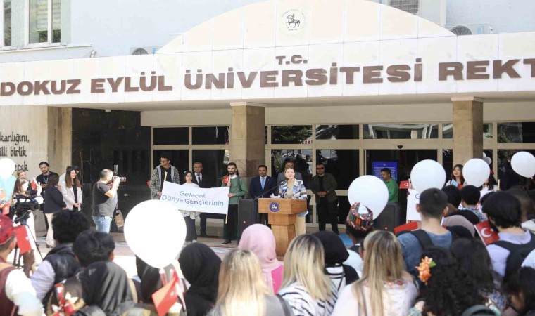 Türkiye’nin köklü yükseköğretim kurumlarından birisi olan Dokuz Eylül Üniversitesi’nde yabancı uyruklu yaklaşık 200 öğrenci, DEÜ Rektörlüğü önünde bir araya geldikleri Rektör Prof. Dr. Nükhet Hotar ile barışı simgeleyen beyaz balonları gökyüzüne uçurdular.