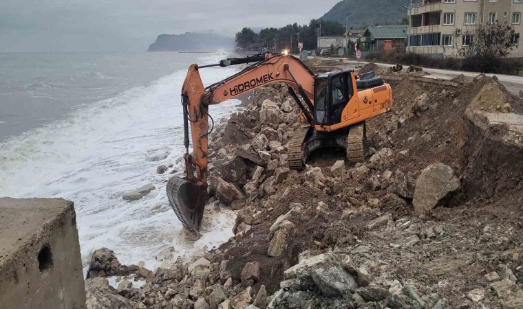 Kastamonu’nun Cide ilçesinde dev dalgalar sebebiyle yıkılan istinat duvarının onarılması için çalışma başlatıldı.