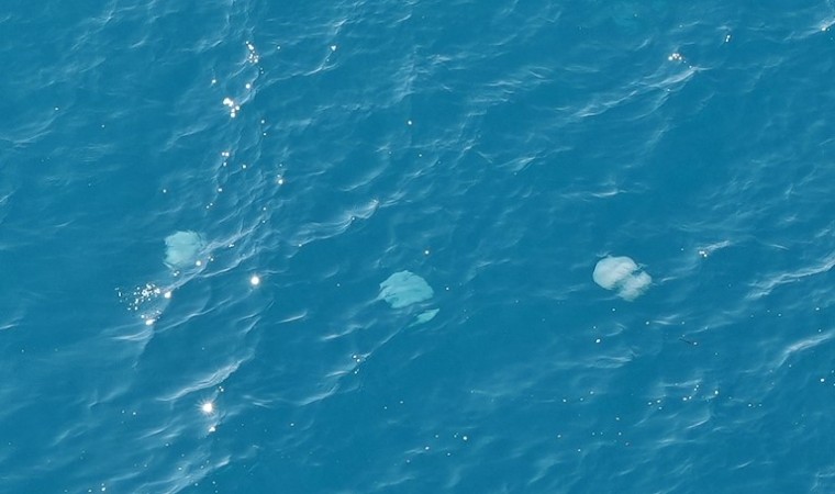 Antalya Körfezi kıyılarında çapı şemsiye büyüklüğü, ağırlığı ise 10 kiloya kadar ulaşan göçmen denizanalarının geçişleri dron ile görüntülendi. Denizanalarının Akdeniz’deki akıntılarla geçişi kıyıdan sürdürdüğünü kaydeden Prof. Dr. Mehmet Gökoğlu, türe elle temas halinde yanma, kızarıklık, döküntü ve tahrişler oluşturabileceği uyarısında bulundu.
