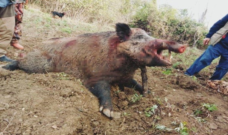 Sinop’un Gerze ilçesinde yaklaşık 300 kilo ağırlığındaki bir domuz, tarım arazilerine zarar verdiği için avcılar tarafından avlandı.