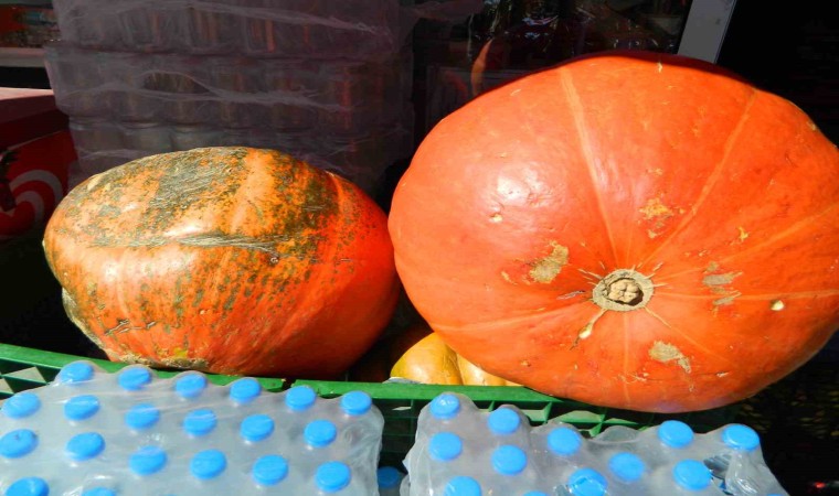 Kabağı kantarda tartan vatandaşlar 26 kilogramı görünce şaşkınlık yaşadı.