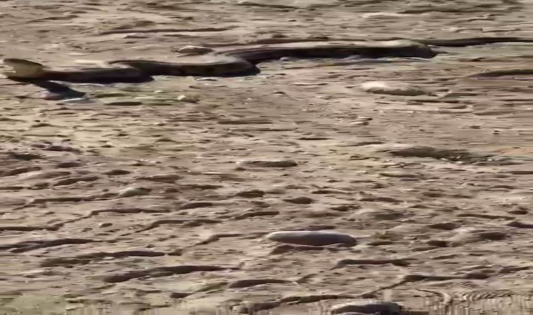 Elazığ Malatya karayolunda ilerleyen iki kişi, yol kenarında bir yılan gördü. Araçtan inen arkadaşlar, yılanın yanına geldiklerinde neye uğradıklarını şaşırdı. Yaklaşık 2 metre uzunluğundaki yılanı cep telefonu kamerası ile kayıt altına alan arkadaşlar, hayvanın saldırmaması için de kendilerince önlem aldı. Dev yılan bir süre sonra gözden kayboldu.