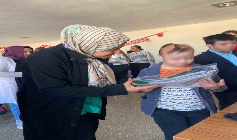 ADEM giyim atölyesinde üretilen el emeği göz nuru ürünler ilçedeki rehabilitasyon merkezinde ve özel öğrencilerin eğitim gördüğü okulda hediye edildi.