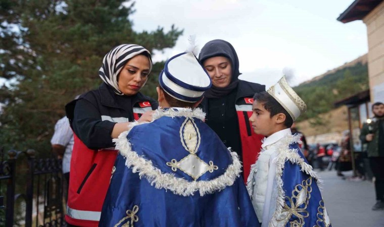 Erzurum Aile ve Sosyal Hizmetler İl Müdürlüğü Nenehatun Çocuk Evleri Sitesi’nde devlet korumasındaki 7 çocuk için bir sünnet düğünü yapıldı. Valiliğe ait Togg ve makam araçları sünnet arabası oldu. Çocuklar gönüllerince eğlendiler, motosikletler eşliğinde şehir turu attılar.