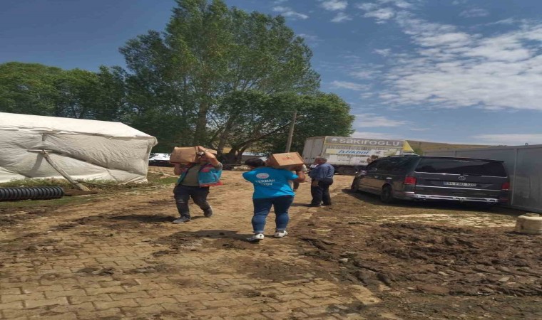 Kızılay ekipleri, afetten etkilenenler için 20 mutfak seti, 80 adet battaniye,80 adet yatak ve benzeri ihtiyaç malzemelerini bölgeye sevk etti.