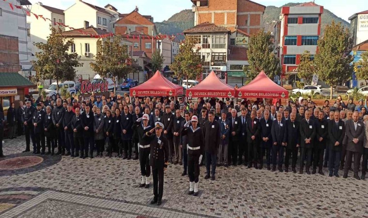 Zonguldak’ın Devrek İlçesinde 10 Kasım Atatürk’ü anma programı, çeşitli etkinliklerle gerçekleştirildi. Mustafa Kemal Atatürk’ün vefatının 86. yıldönümü nedeniyle hazırlanan anma programı protokol heyetinin katılımı ile Cumhuriyet Alanında gerçekleştirildi. Törenlere Devrek Kaymakamı Muhammed Evlice, Garnizon Komutanı Öğretmen Yüzbaşı Aykut Erdogdu, Belediye Başkanı Özcan Ulupınar’ın Cumhuriyet Alanında bulunan anıta çelenk sunulmasıyla başlandı. İki dakikalık saygı duruşu ve İstiklal Marşı’nın okunmasının ardından buradaki tören sona erdi.