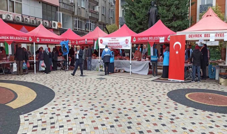 Zonguldak’ın Devrek ilçesinde İsrail’in saldırıları altındaki Gazze’de ki Filistinliler yararına maddi destek amaçlı hayır çarşısı kuruldu. Devrek Müftülüğü tarafından organize edilen etkinlikte elde edilecek olan gelir İsrail’in işgal ettiği Gazze’de ki Filistinlilere gönderilecek. Cumhuriyet Alanına kurulan hayır çarşısında elli kilo et döneri, Devrek’e mahsus köy ekmekleri, gözlemeler, bazlamalar, yine ilçeye mahsus cevizli kömeçler, çorba ve çaylar satılarak elde edilen gelirin tamamı Gazze’ye gönderilecek.