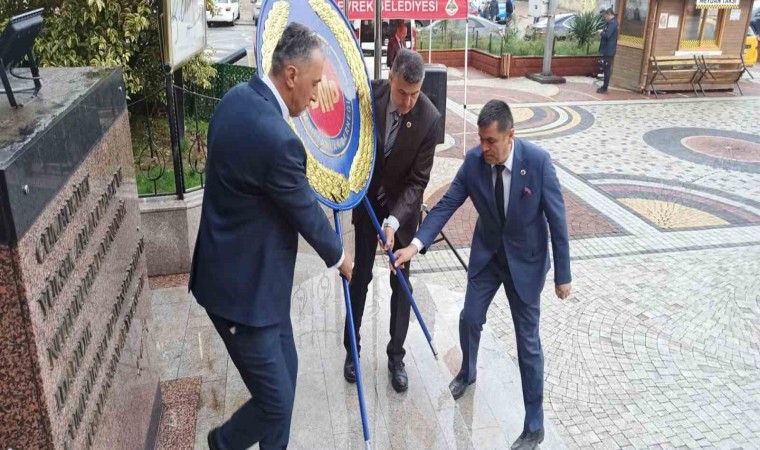 Kutlamalara Cumhuriyet Alanında bulunan anıta Muhtarlar Derneği Başkanı Fatih Çarıkçı tarafından çelenk sunumu ile başlandı.