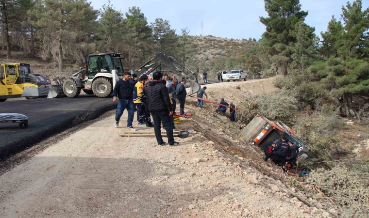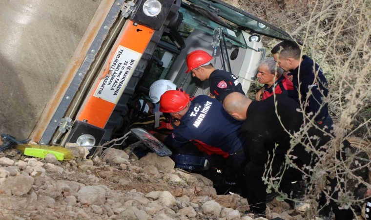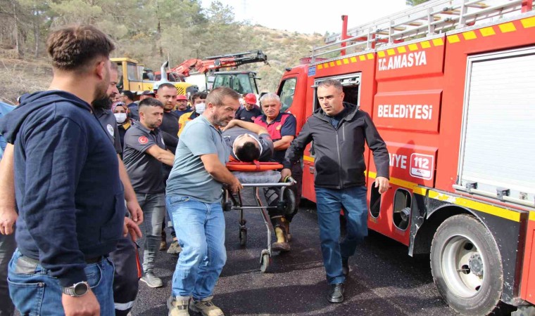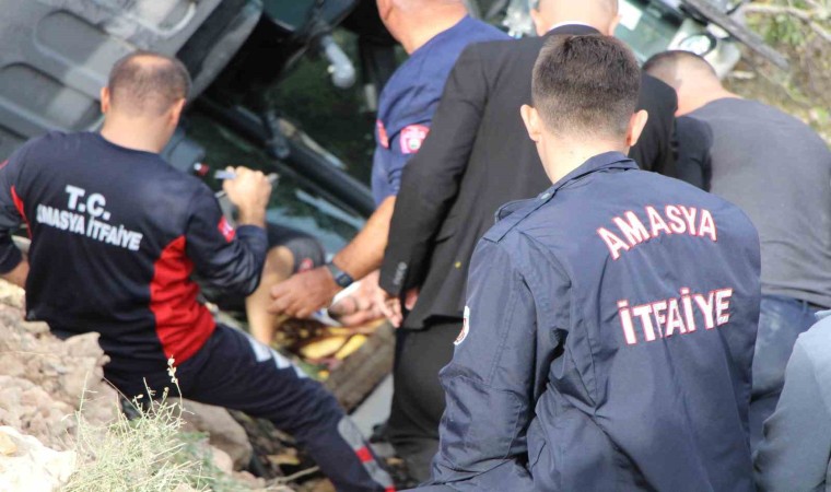 Yağmur köyü yolunda görev yapan Amasya İl Özel İdaresi’ne ait iş makinesi kontrolden çıkarak devrildi. Sürüklenen 11 tonluk makine ağaçlara çarparak durabildi, operatör Murat Hicin ise aracın içinde sıkıştı. Durumun bildirilmesi üzerine olay yerine Amasya Belediyesi itfaiyesi, acil sağlık, AFAD ve jandarma ekipleri sevk edildi. Halatlarla iş makinelerine bağlanan silindirin içinde ayağı sıkışan Hicin, yarım saati aşan çalışma sonucu çıkartılarak hastaneye kaldırıldı.