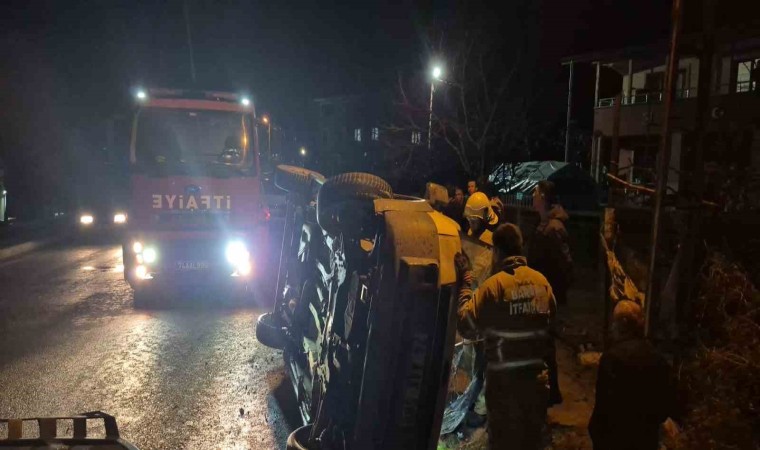 Kaza nedeniyle ulaşımın kontrollü sağlandığı yol, devrilen aracın çekici yardımıyla kaldırılmasının ardından normale döndü.