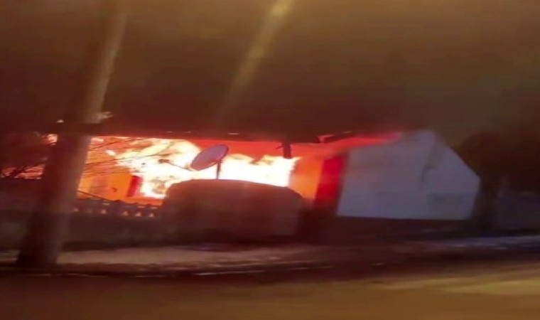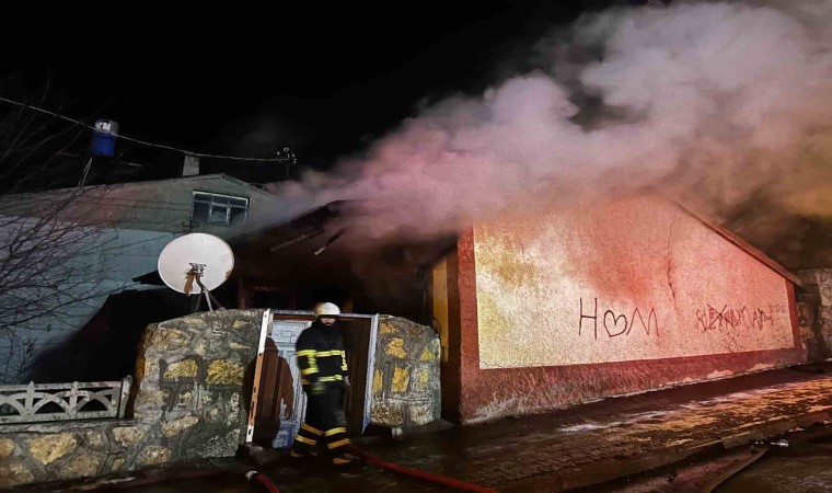 Sivas’ta elektrikli sobanın devrilmesi sonucu meydana gelen yangında müstakil bir ev alevlere teslim oldu. Yangın anı cep telefonu kamerasına yansıdı.