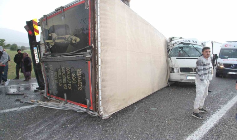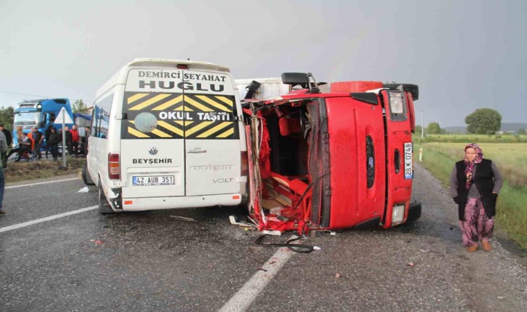Konya’nın Beyşehir ilçesinde, devrilerek karşı şeride geçen kamyonun minibüsle çarpışması sonucu 14 kişi yaralandı.