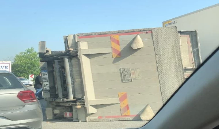 Kaza, saat 09.00 sıralarında Bursa-Yalova yolunda meydana geldi. Sürücüsünün direksiyon hakimiyetini kaybettiği 16 AVZ 574 plakalı kamyon, Yalova'nın Soğucak köyü kavşağında devrildi. Kaza nedeniyle yol trafiğe kapanırken, yolda uzun araç kuyruğu oluştu. KPSS'ye girmek üzere özel araçları ve toplu taşıma araçları ile Bursa'nın Orhangazi ilçesinden Yalova'ya sınava gitmek isteyenler de yolda kaldı. Adayların sınava yetişebilmesi için polis ve jandarma ekipleri devreye girdi. Bazı adayların araçlarından inerek Yalova istikametine doğru yürüdükleri görüldü. Devrilen kamyonun çekici ile kaldırılmasının ardından, yol yeniden trafiğe açıldı. (DHA)