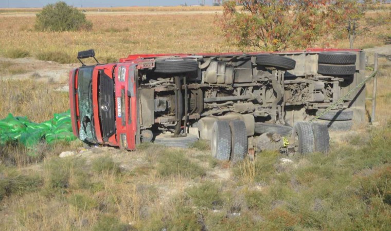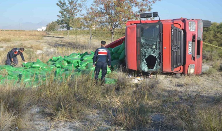 Konya’nın Ereğli ilçesinde yem yüklü kamyonun şarampole devrilmesi sonucu sürücü ağır yaralandı.