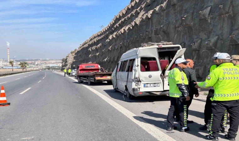 Kaza, Hatay - Adana otoyolu İskenderun ilçesi mevkiinde meydana geldi. İ.S. idaresindeki plakalı 31 M 0640 Volkswagen marka minibüs, sürücüsünün direksiyon hakimiyetini kaybetmesiyle devrildi. Aracın devrildiğini gören vatandaşlar durumu 112 Acil Çağrı Merkezi’ne bildirdi. Kısa sürede olay yerine sağlık, itfaiye ve polis ekipleri sevk edildi. Olay yerine gelen itfaiye ekipleri, yaralıları araçtan çıkararak sağlık ekiplerine teslim etti. Kaza sonrası yaşanan can pazarı ise cep telefonu kamerasına yansıdı. Olay yerinde ilk müdahaleleri yapılan 12 yaralı ambulanslarla hastaneye kaldırıldı.