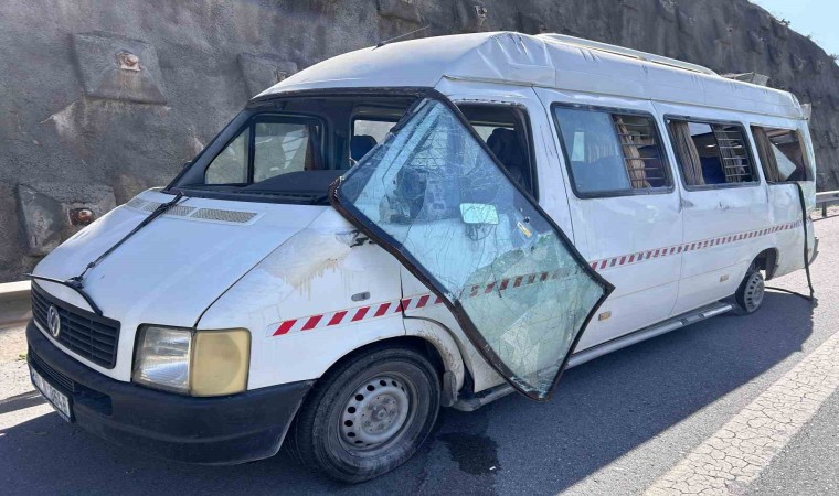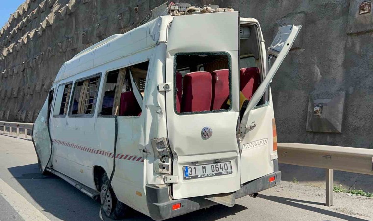 Hatay’ın İskenderun ilçesinde meydana gelen kazada devrilen minibüsteki 12 kişi yaralandı, kaza sonrası yaşanan can pazarı cep telefonu kamerasına yansıdı.
