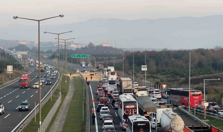 Kaza, saat 16.00 sıralarında TEM Otoyolu’nun Bolu geçişinde meydana gelmişti. TEM Otoyolu’nun Ankara istikameti Abant Gişeleri mevkiinde M.B. idaresindeki 41 B 5525 plakalı tane mısır yüklü tır, sürücüsünün kontrolünden çıkarak devrilmişti. Sürücünün yara almadan kurtulduğu kazada, Ankara istikameti ulaşıma kapanmıştı. İhbar üzerine bölgeye jandarma ve karayolları ekipleri sevk edilmişti. Tırın yoldan kaldırılması için çalışma başlatılırken, otoyolun Ankara istikametinde uzun araç kuyrukları oluşmuştu.