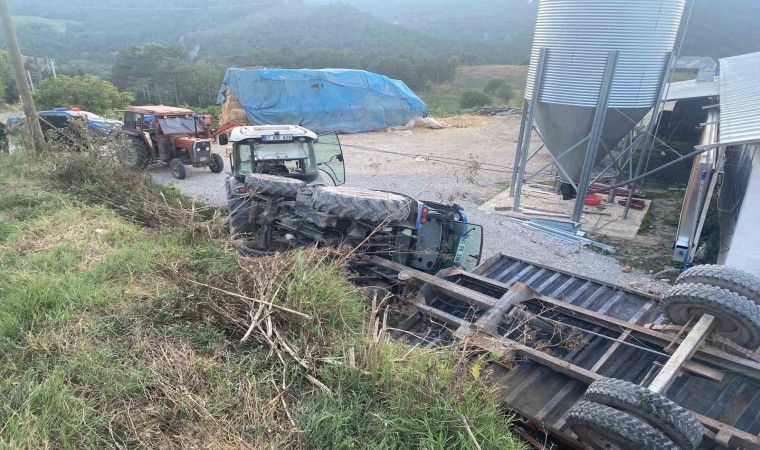 Acı olay, Bolu’nun Göynük ilçesinde Çatacık köyünde meydana geldi. Edinilen bilgiye göre, Çatacık köyünde römorkunda kum yüklü olan 81 FK 298 plakalı traktör, engebeli arazide aniden hareket etti.