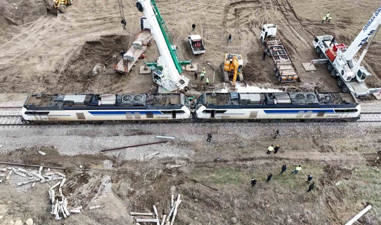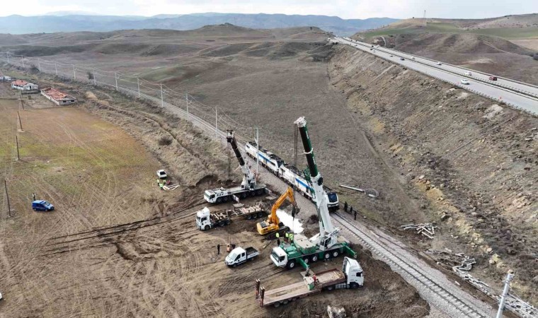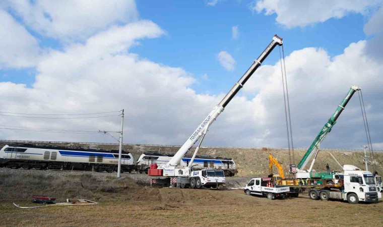 Kırıkkale’de devrilen yük treninin lokomotifi, vinç ve iş makinalarıyla kaza alanından kaldırılarak, 35 saattir kapalı olan konvansiyonel demir yolu hattı yeniden ulaşıma açıldı.