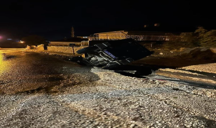 Olay, gece saatlerinde Hazro ilçesi Şehitlik Caddesi’nde meydana geldi. Daha önce enerji iletim kablolarının yer altına alındığı bölgede kazılan alanın üzerine mıcır dökülen yol, etkili olan sağanakta çöktü. Yoldan geçen zırhlı polis aracı, devrildi. Can kaybı ya da yaralının olmadığı kazada, araçta hasar oluştu.