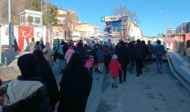Peygamber Sevdalıları Platformu Dicle Temsilciliği tarafından düzenlenen yürüyüş, Üç yol mevkiden başlayıp Çeşmebaşı meydanına kadar devam etti.
