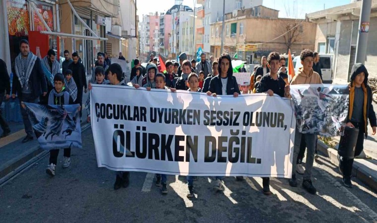 Diyarbakır’ın Dicle ilçesinde çocuklar tarafından İsrail’in saldırılarına maruz kalan Gazze’ye destek için yürüyüş yapıldı.