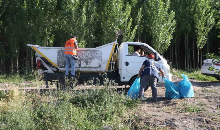 Dicle Vadisi’ndeki çöpleri toplayan program katılımcıları, daha sonra topladıkları çöpleri geri dönüşüm merkezlerine götürmek üzere araçlara yükledi.