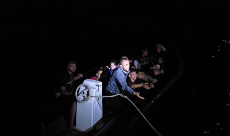 Aydın’ın Didim ilçesinde arızalanarak sürüklenen lastik bottaki 13 düzensiz göçmen kurtarıldı.
