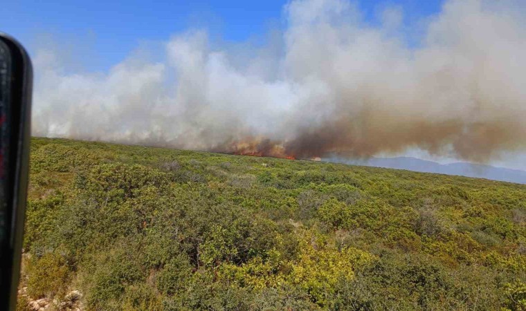 Aydın’ın Didim ilçesindeki makilik ve zirai alanda etkili olan yangını söndürme çalışmaları devam ediyor.