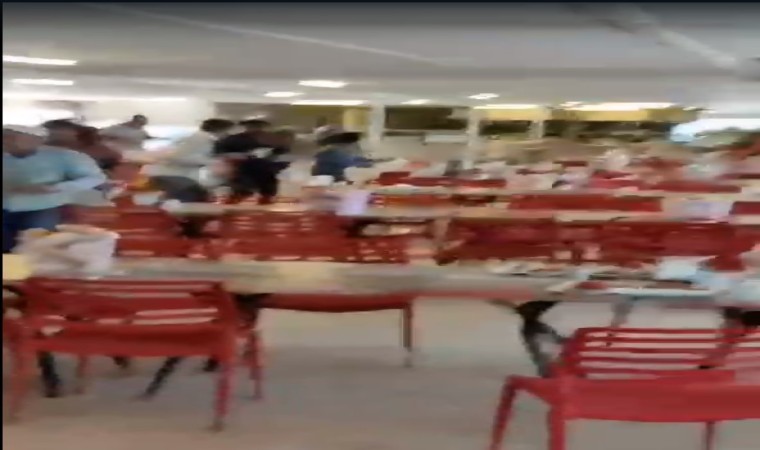 Aydın’ın Didim ilçesinde, otel inşaatında çalışan işçilerin, yemekhane kavgasında masa, sandalye, tabldot, çatal ve kaşıklar havada uçuştu. Meydan savaşına dönen kavga anbean kameraya yansıdı.