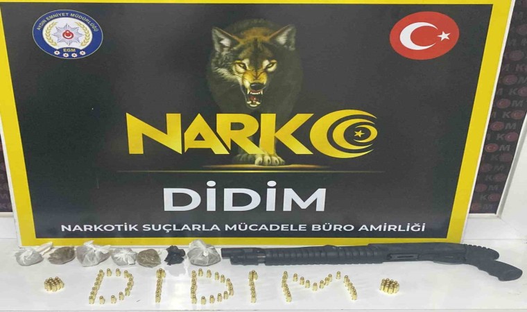 Aydın’ın Didim ilçesinde polis ekipleri tarafından gerçekleştirilen çalışmalar çerçevesinde düzenlenen bir operasyonda; 1 adet pompalı tüfek, 100 adet fişek ve 102,84 gram uyuşturucu madde ele geçirildi.