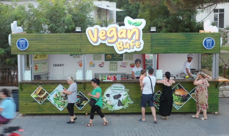 Halkın vegan yiyeceklere erişebilmesi ve sağlıklı yiyeceklerin tanıtılması için açılan, Vegan şef ve vegan personel tarafından işletilen Vegan Büfe Altınkum Yalı Caddesi’nde yaz sonunda kadar hizmet vermeye devam edecek.
