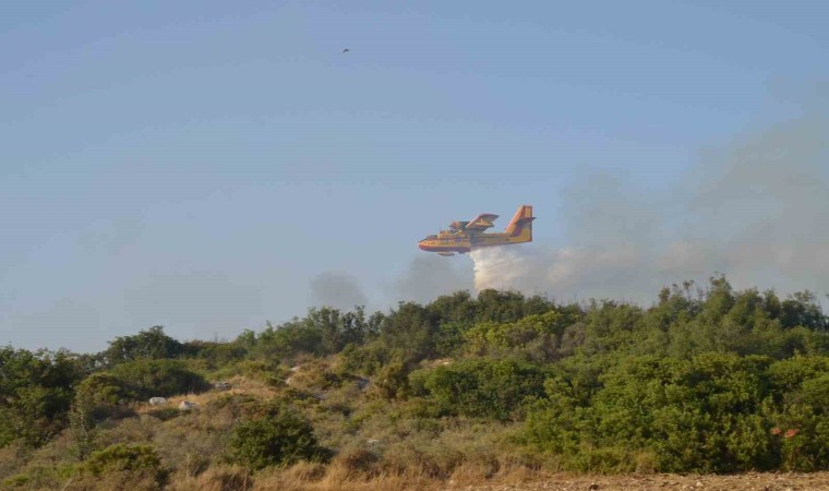 Didim’de makilik alanda çıkan yangın korkuttu. Evlere yakın bölgede çıkan yangına 4 helikopter, 3 uçakla havadan, iş makineleri ve arasözlerle müdahale edilirken yangında yaklaşık 50 dekarlık alan zarar gördü.