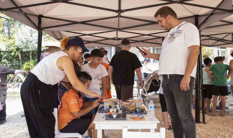 Kadın ve Aile Hizmetleri Dairesi bünyesinde hizmet veren Kadın ve Çocuk, Bilim ve Teknoloji atölyelerindeki etkinliklerin bir araya getirildiği Dijital Köy Buluşmaları projesinin son durağı ise Akdeniz ilçesindeki Barış Mahallesi oldu. Robotik kodlama, stem, ahşap işleme, 3D tasarım, VR gözlük deneyimi ile çocuklar birçok farklı etkinlikle buluşturuldu. Barış Mahallesi’nde 7’den 70’e her yaştan vatandaşın katıldığı etkinlikte çocuklar; Kadın ve Çocuk, Bilim ve Teknoloji atölyelerinde yapılan robotları kullanıp, ahşap işleme stantlarında ahşap figürlerden anahtarlık yaptı. Stem çalışmaları da yapan çocuklar için ayrıca yüz boyama etkinliği gerçekleştirildi. Çocuklara patlamış mısır, pamuk şeker ve limonata ikramında da bulunuldu.