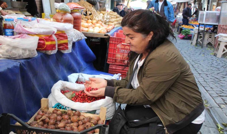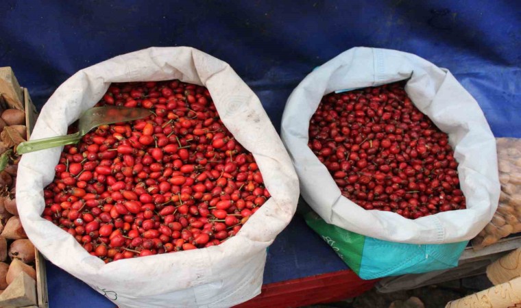 Aydın’ın dağlarından bin bir zahmetli toplanan, kış aylarında tercih edilen kuşburnuna rağbet artarken pazar tezgahlarındaki yerini aldı.