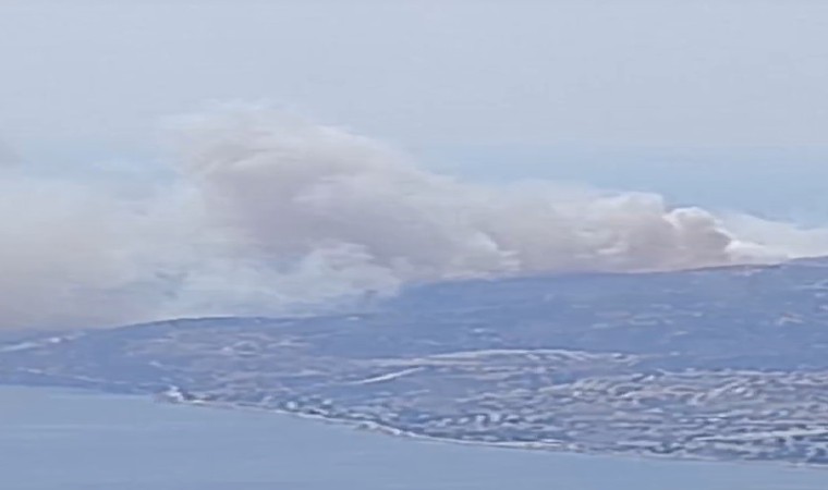 İzmir’in Dikili ilçesinde çıkan orman yangınına havadan ve karadan müdahale sürüyor.