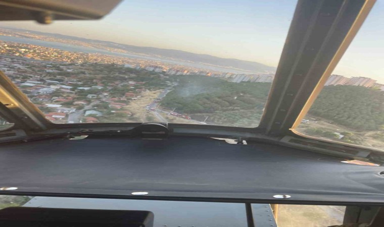 İzmir’in Dikili ilçesinde ormanlık alanda çıkan yangına ekipler havadan ve karadan müdahale ediyor.