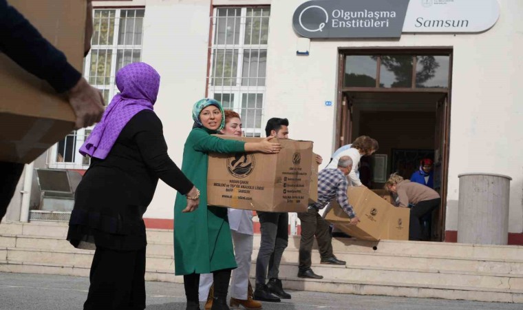 Samsun İl Milli Eğitim Müdürlüğü Olgunlaşma Enstitüsü ve Halk Eğitim Merkezlerinin dikiş makinelerini bu kez Gazze’de savaş mağduru çocuklar için çalıştı. Yaklaşık 1 ayda merkezlerdeki kursiyer ve usta öğreticiler 1 tırı dolduracak kadar malzeme üretmeyi başardı. Merkezlerde yeni doğan seti, havlu takımı, polar battaniye, eşofman takımı, maske, oyuncak, uyku tulumu, örgü bebek kazağı, eldiven, bere, çorap, sweatshirt, namaz eteği ve başörtü üretildi. Üretilen malzemeler Samsun Olgunlaşma Enstitüsü bahçesinde tıra yüklenerek uğurlandı. İlk olarak Samsun’dan Mersin Limanı’na gidecek olan malzemeler oradan da Milli Eğitim Bakanlığı koordinesinde gerekli yerlere ulaştırılacak.