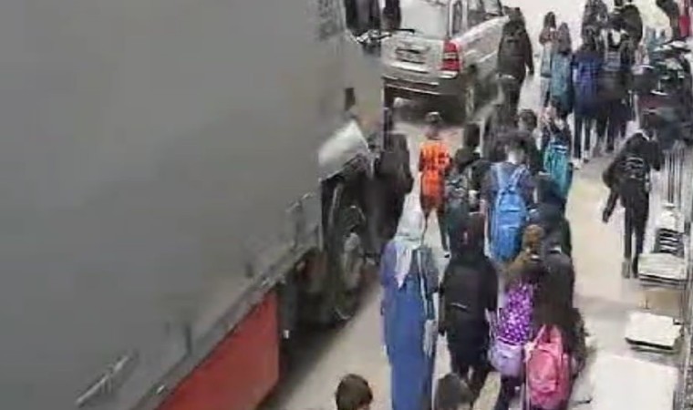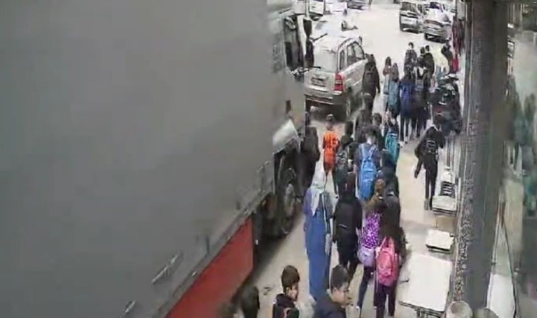 Denizli’de okul çıkışı arkadaşlarıyla kaldırımda yürürken biranda yola inen 5. sınıf öğrencisi, kamyonun altında kalmaktan kıl payı kurtuldu. Çarpmanın ardından kamyonun altına düşen öğrencinin, arkadaşları tarafından çekilip ezilmekten kurtarıldığı anlar güvenlik kameralarına yansıdı.