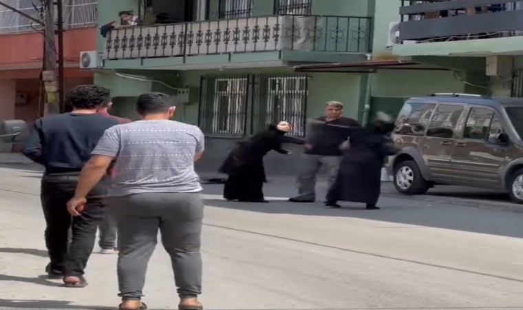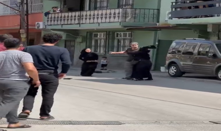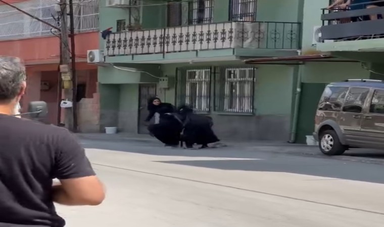 Adana’da dilenci olduğu öne sürülen iki kadının çocuğun yanında terlik ve çanta ile birbirine vurması saniye saniye görüntülendi.