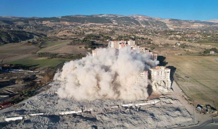 Kahramanmaraş merkezli meydana gelen depremler sonrasında ağır hasar raporu verilen binalarda dinamit ile kontrollü yıkım sürüyor.
