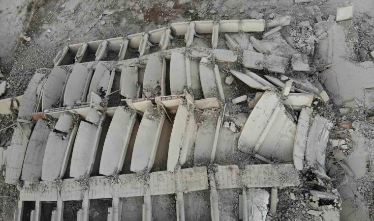 Yıkımın ardından binaların enkazıysa dron ile havadan görüntülendi.