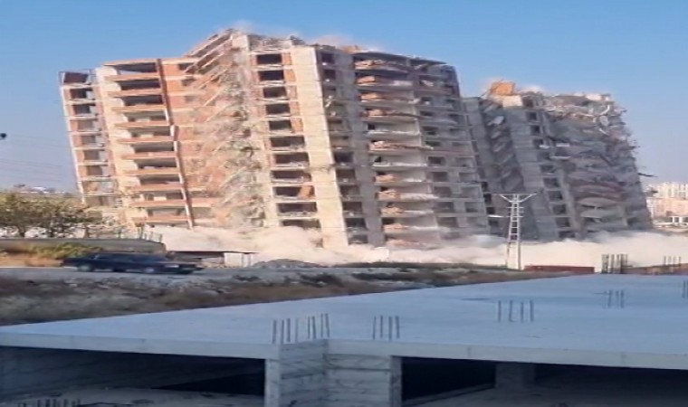 Kahramanmaraş merkezli depremlerin en büyük hasarı oluşturduğu Hatay’da ekiplerin hummalı yıkım çalışmaları aralıksız sürüyor. Antakya ilçesinde 16’şar katlı iki devasa binanın yıkımı, dinamit kullanılarak yapıldı. Dinamitin patlatılmasıyla yerle bir olan binalar, vatandaşlar tarafından cep telefonu kamerasıyla görüntülendi.