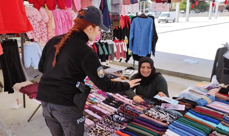 Afyonkarahisar’ın Dinar ilçesinde güvenlik güçleri tarafından ilçede kurulan semt pazarında ’Kadın Acil Destek İhbar Sistemi (KADES) hakkında farkındalık çalışması yapıldı.