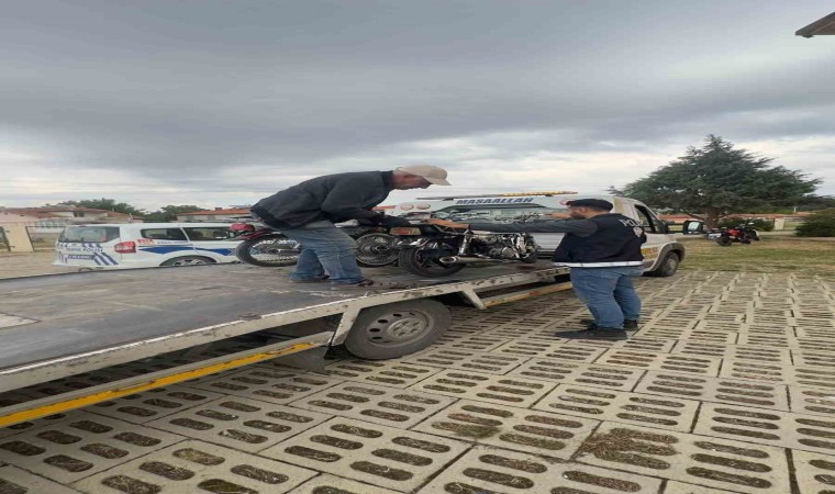 Polis ekipleri tarafından ilçe merkezinde gerçekleştirilen denetimde 13 motosiklet sürücüsü durdurularak evrak kontrolleri yapıldı. Denetimde çevreye rahatsızlık veren, sürücü belgesiz araç kullanmak, tescili zorunlu aracı plakasız kullanmak, motosiklet kullanırken koruyucu başlık kullanmak gibi kurallara uymayan 8 motosiklet trafikten men edildi.
