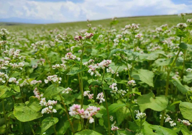 Dinarda bu yıl ilk kez ekilen kara buğday çiçek açtı