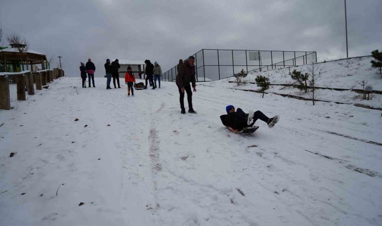 Karın keyfini çocuklarıyla birlikte çıkardığını belirten Büşra Arısan, İHA muhabirine yaptığı açıklamada, Dinek Dağı’nda karı gördüklerinden dolayı da mutlu olduklarını söyledi.