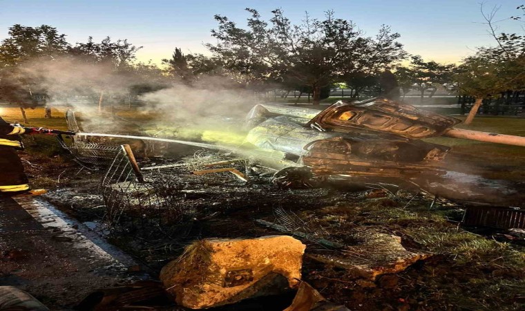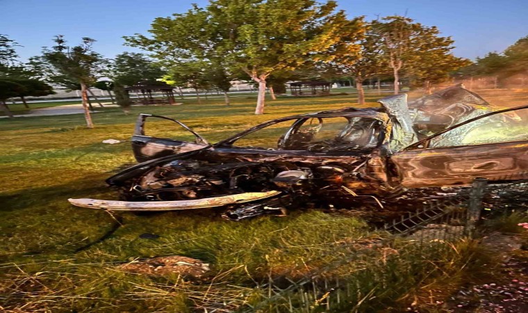Konya’da aydınlatma direğine çarpan otomobil, alev alarak yandı. Kazada sürücü hayatını kaybederken, 1 kişi ağır yaralandı.