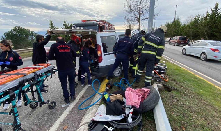 Kaza, İzmit ilçesi Baki Komsuoğlu Bulvarı Kabaoğlu mevkiinde meydana geldi. Edinilen bilgiye göre, direksiyon başında fenalaşan Turgay Mert’in (42) kontrolünden çıkan 54 ABJ 852 plakalı hafifi ticari araç, önce aydınlatma sonra Elektronik Denetleme Sistemi (EDS) direğine çarptı. Çarpmanın şiddetiyle motor araçtan dışarıya fırladı. Sürücü Turgay Mert, eşi A.M. (48) ve oğlu O.M. (16) araçta sıkıştı. Kazayı gören diğer sürücüler yardıma koşarken 112 Acil Çağrı Merkezine ihbarda bulundu. İhbar üzerine adrese itfaiye, sağlık ve polis ekipleri sevk edildi.