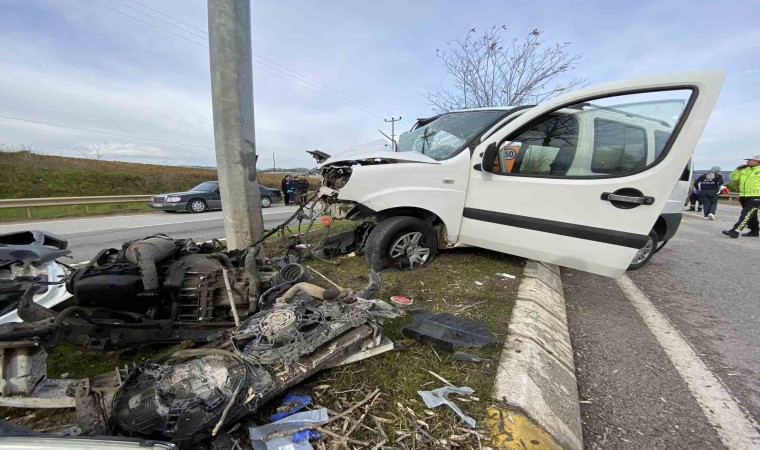 Kocaeli’de direksiyon başında fenalaşan sürücünün kontrolünden çıkan hafifi ticari araç, Elektronik Denetleme Sistemi direğine çarptı. Kazada sürücü hayatını kaybederken, eşi ve oğlu yaralandı. Ailenin tedavi için gittikleri hastaneden dönerken kaza geçirdikleri öğrenilirken, çarpışmanın şiddetiyle motorun araçtan fırladığı görüldü.